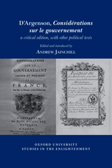 Andrew Jainchill (éd.) : D’Argenson : Considérations sur le gouvernement