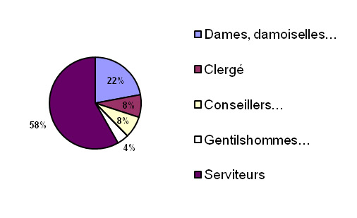 Effectif : 23 en 1575/78 ; 38 en 1579 ; 43 en 1580 ; 45 en 1581 ; 49 en 1582/83 ; 51 en 1584 ; 57 en 1585/87 ; 58 en 1588 ; 60 en 1589/90